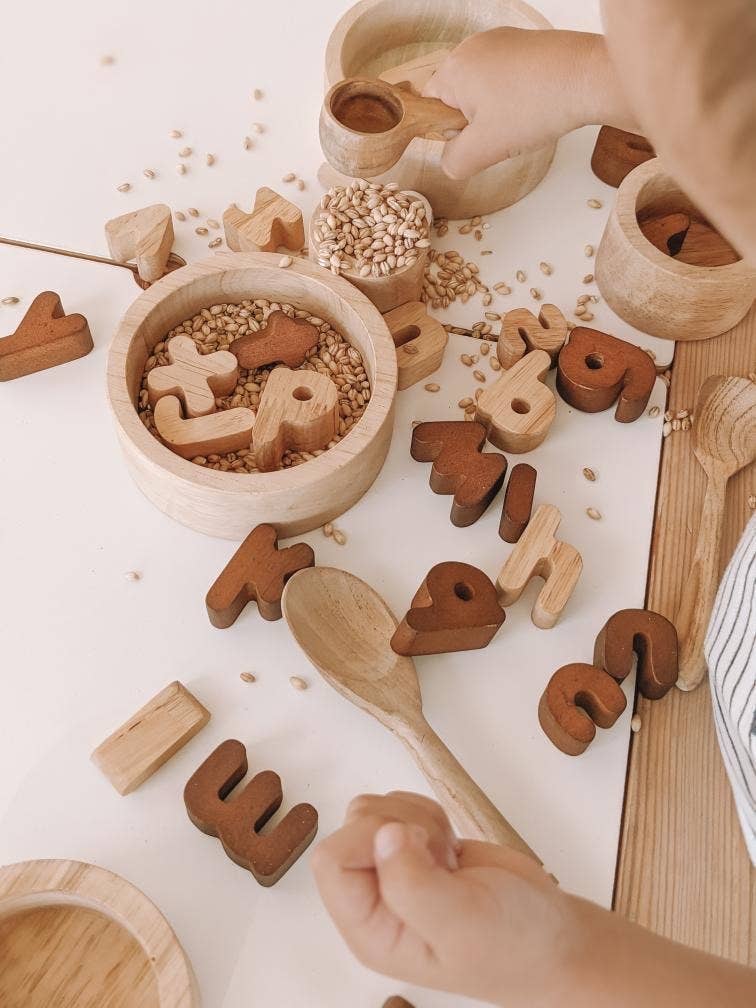 Dieses Alphabet-Set aus Holz besteht aus 26 Kleinbuchstaben. Wenn Kinder diese Buchstaben erforschen, werden sie beginnen, die Buchstaben des Alphabets zu identifizieren, die für die Alphabetisierung und Sprachentwicklung von Vorteil sind. Kinder können lernen, Wörter zu schreiben und zu bilden, indem sie diese Buchstaben verwenden. Das Erlernen von Buchstaben ist für Kinder äußerst vorteilhaft, da Buchstaben Wörter und Sätze bilden und wir so miteinander kommunizieren. Daher ist es wichtig, Kindern die Möglichkeit zu geben, Buchstaben zu lernen und zu erkennen.