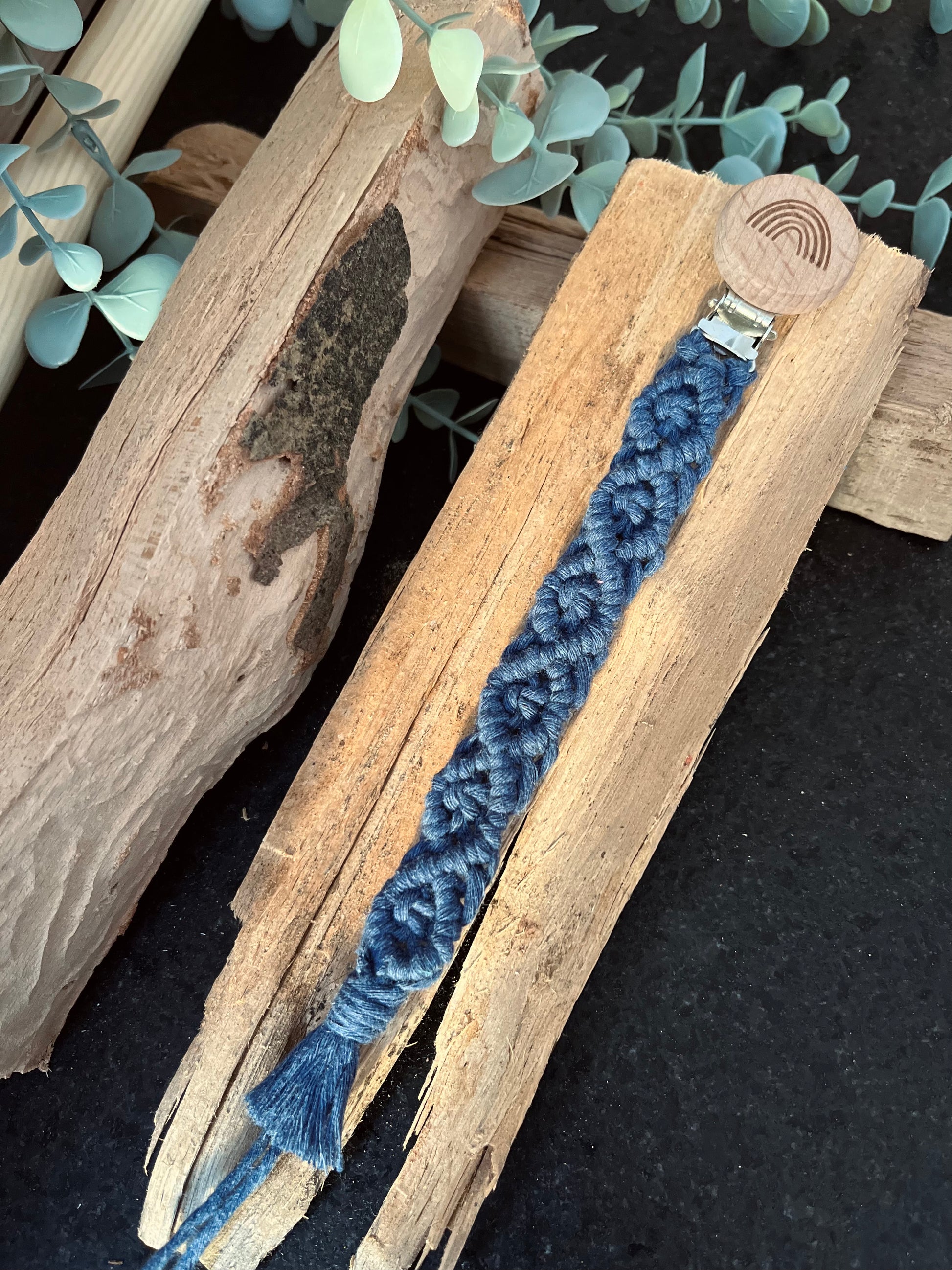 Damit der Liebling deines Kindes auch immer seinen festen Platz behält und so frei von Schmutz bleibt, ist eine Makrameenuggikette die perfekte Wahl.