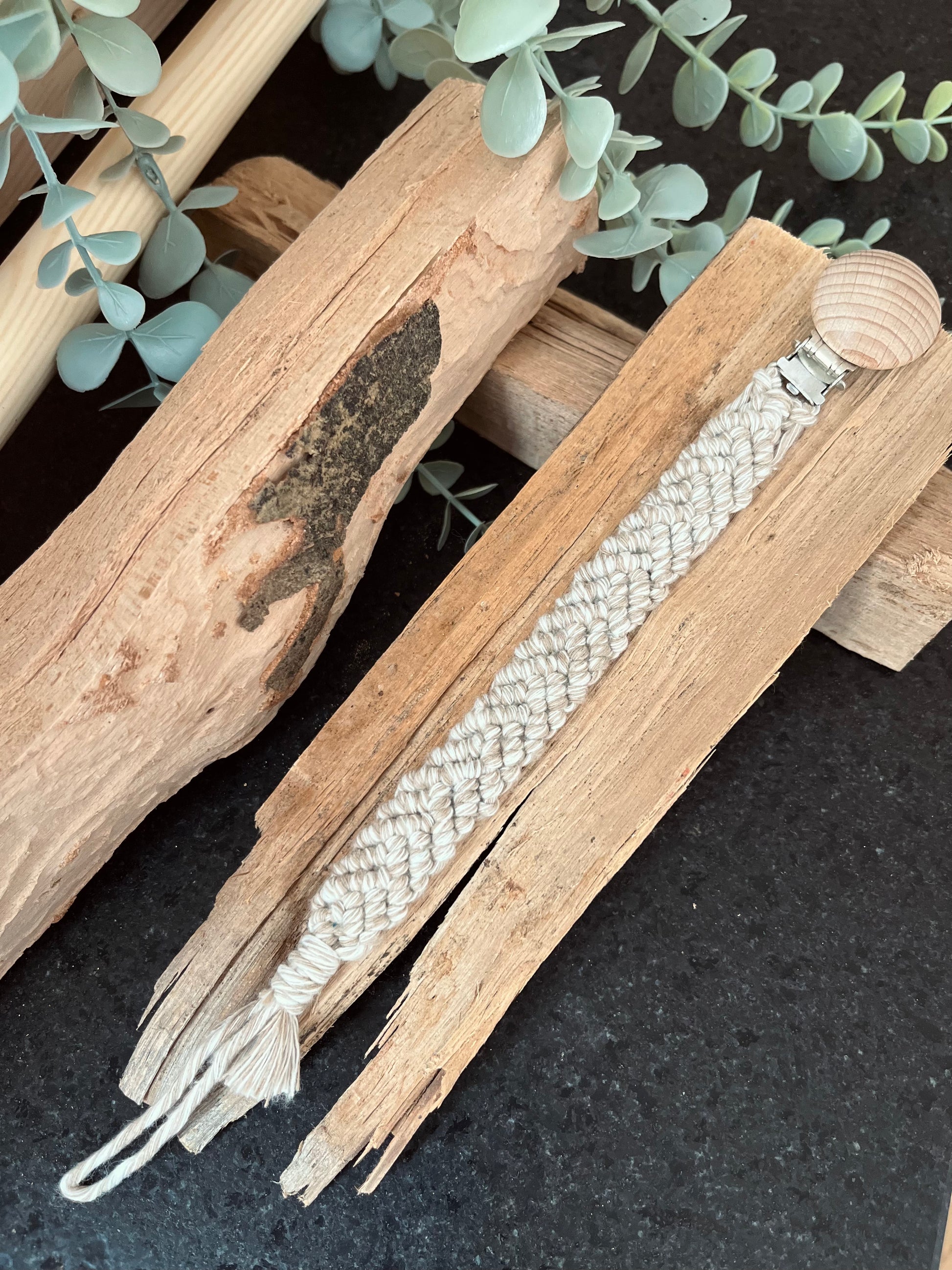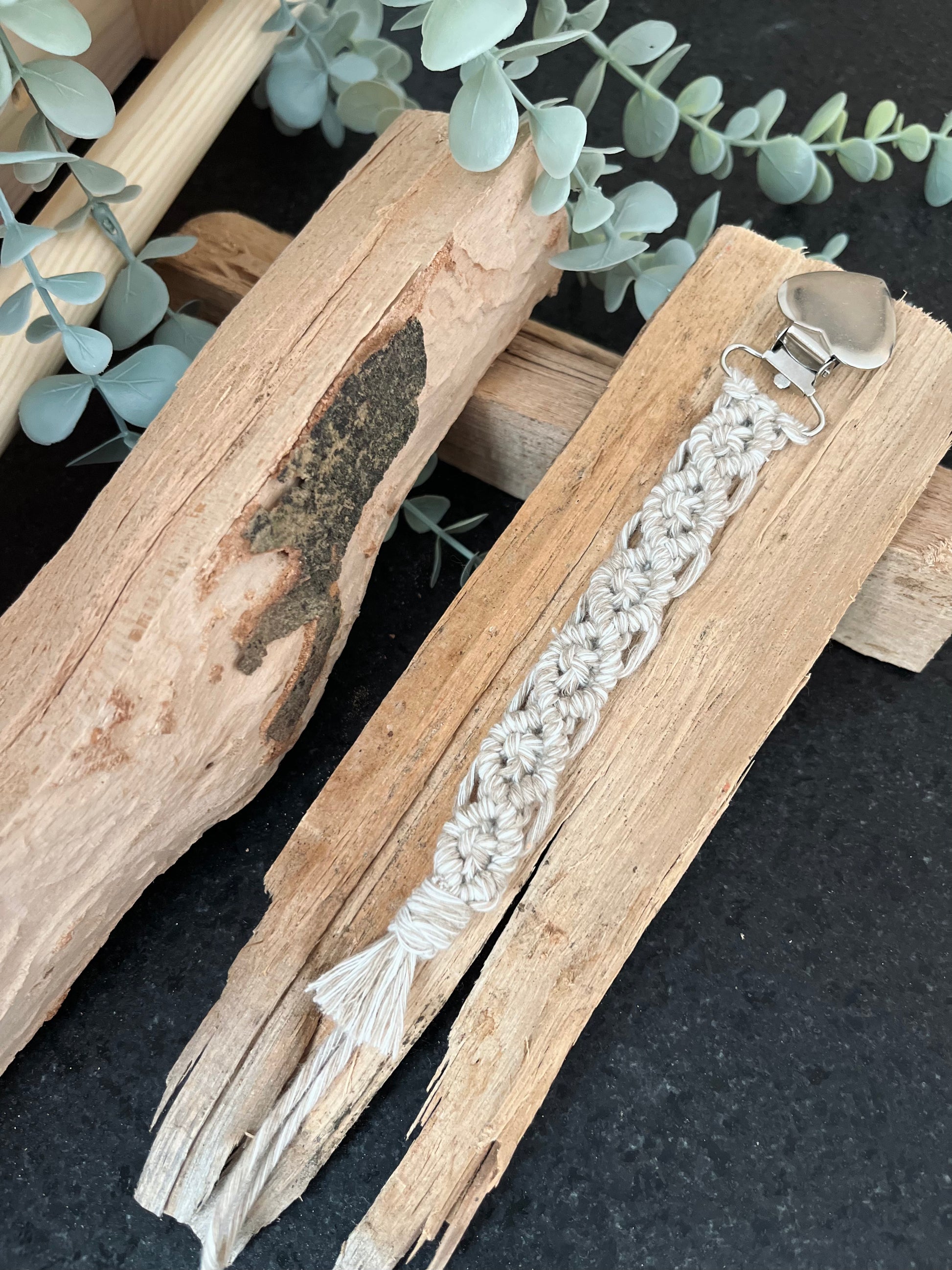 Damit der Liebling deines Kindes auch immer seinen festen Platz behält und so frei von Schmutz bleibt, ist eine Makrameenuggikette die perfekte Wahl.