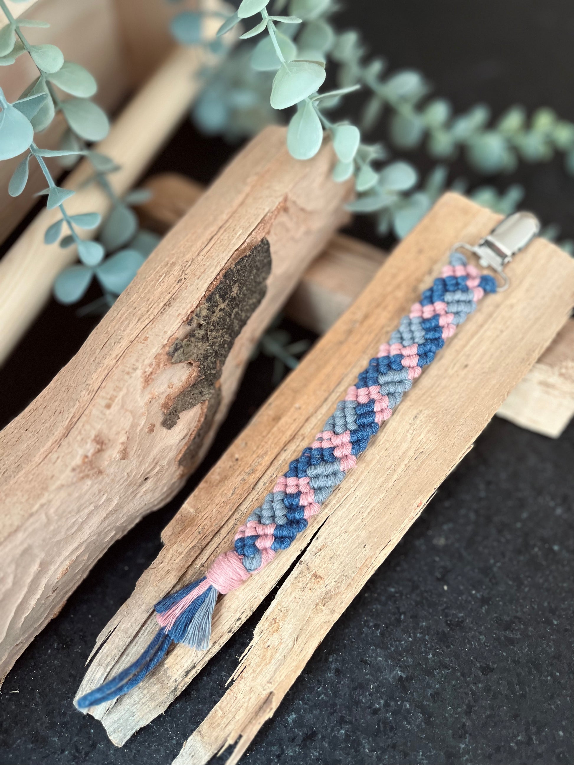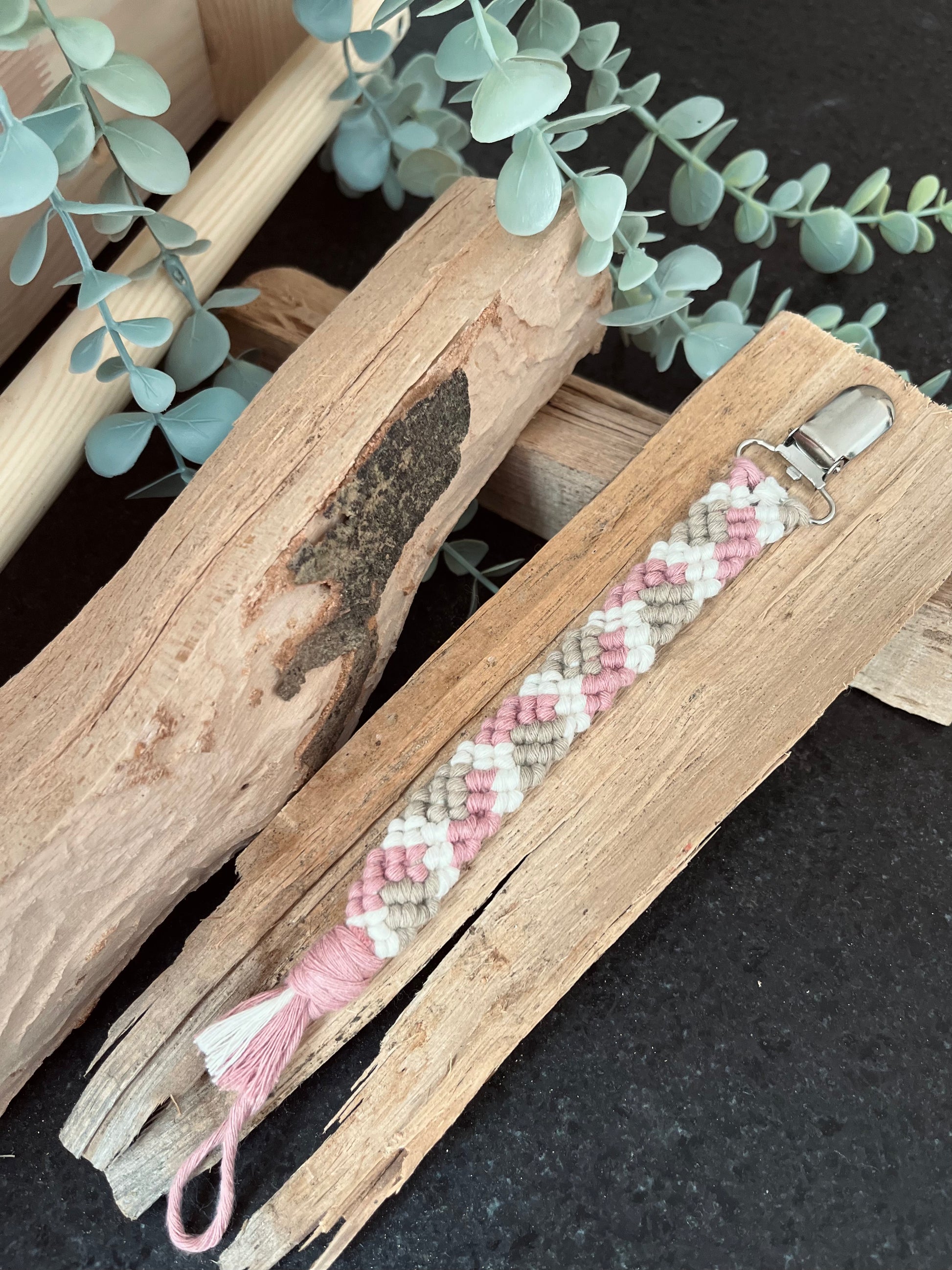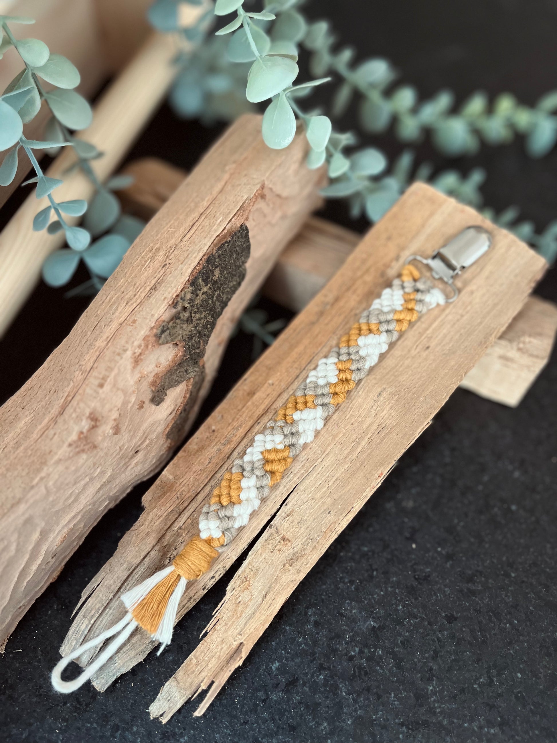 Damit der Liebling deines Kindes auch immer seinen festen Platz behält und so frei von Schmutz bleibt, ist eine Makrameenuggikette die perfekte Wahl.