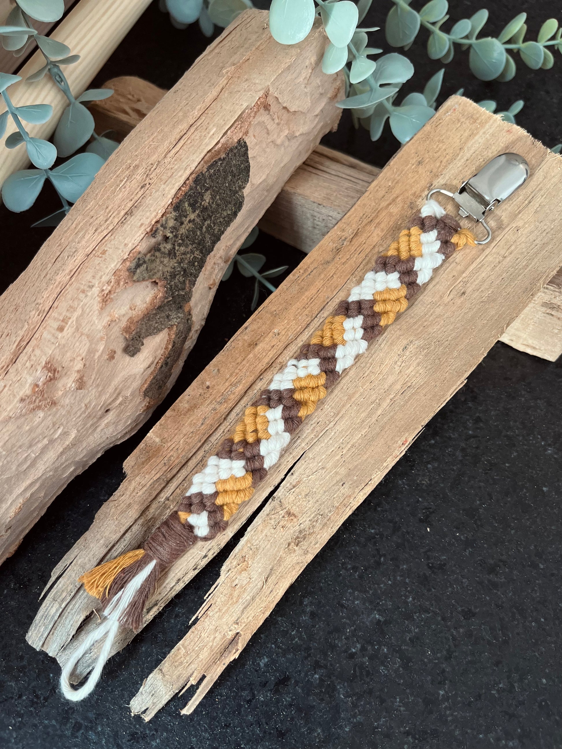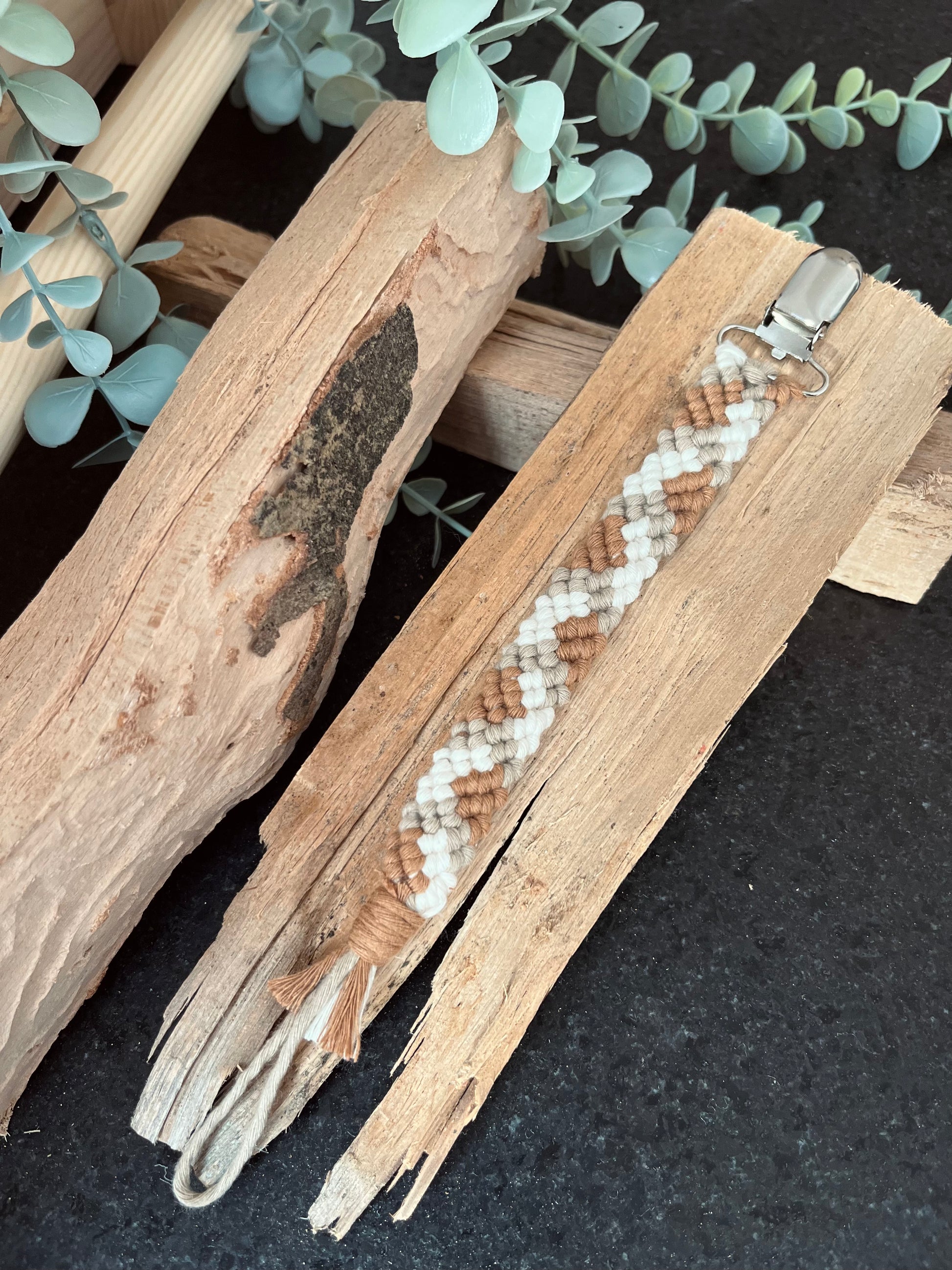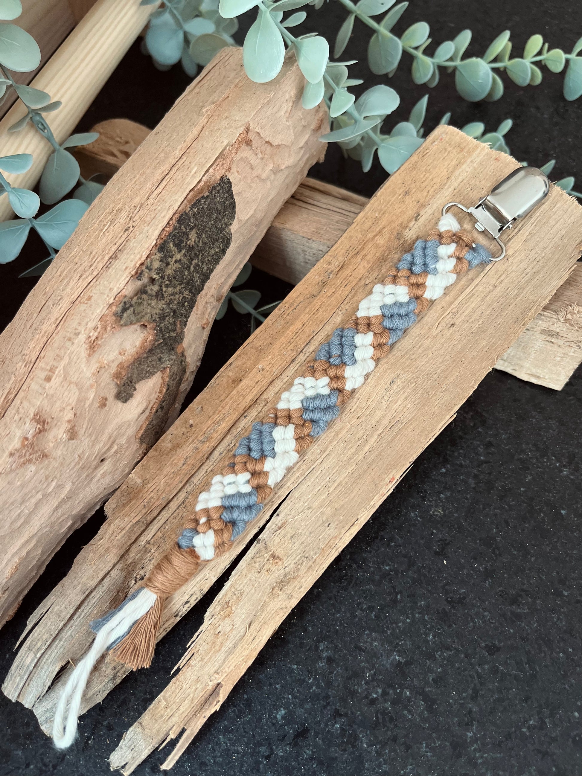 Damit der Liebling deines Kindes auch immer seinen festen Platz behält und so frei von Schmutz bleibt, ist eine Makrameenuggikette die perfekte Wahl.